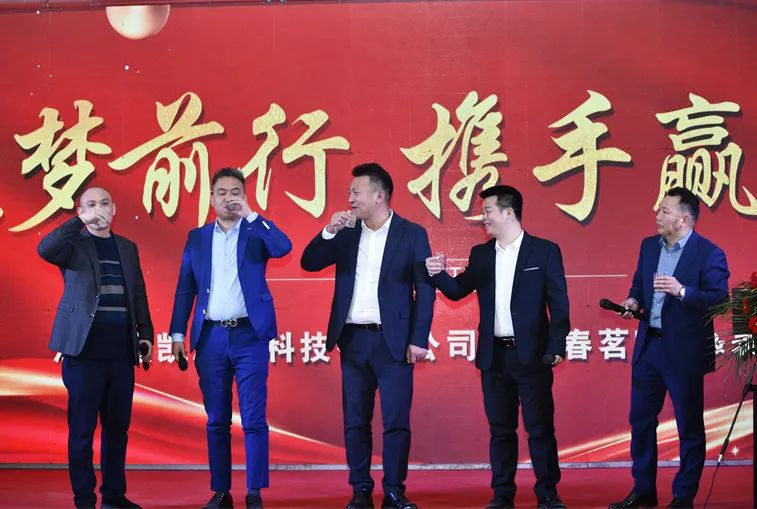 禹總、易總、白總、劉總、田總五位領導共同為春茗晚宴祝酒道賀,期盼杰凱集團在新的一年里能繼奏凱歌、續(xù)寫華章!