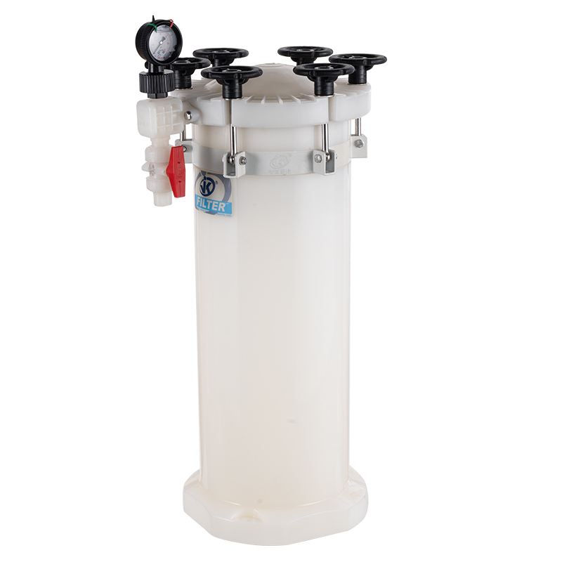7.將耐酸堿過濾器上蓋對準之后,同時擰緊對角的兩個吊帽,之后將所有的吊帽擰緊;